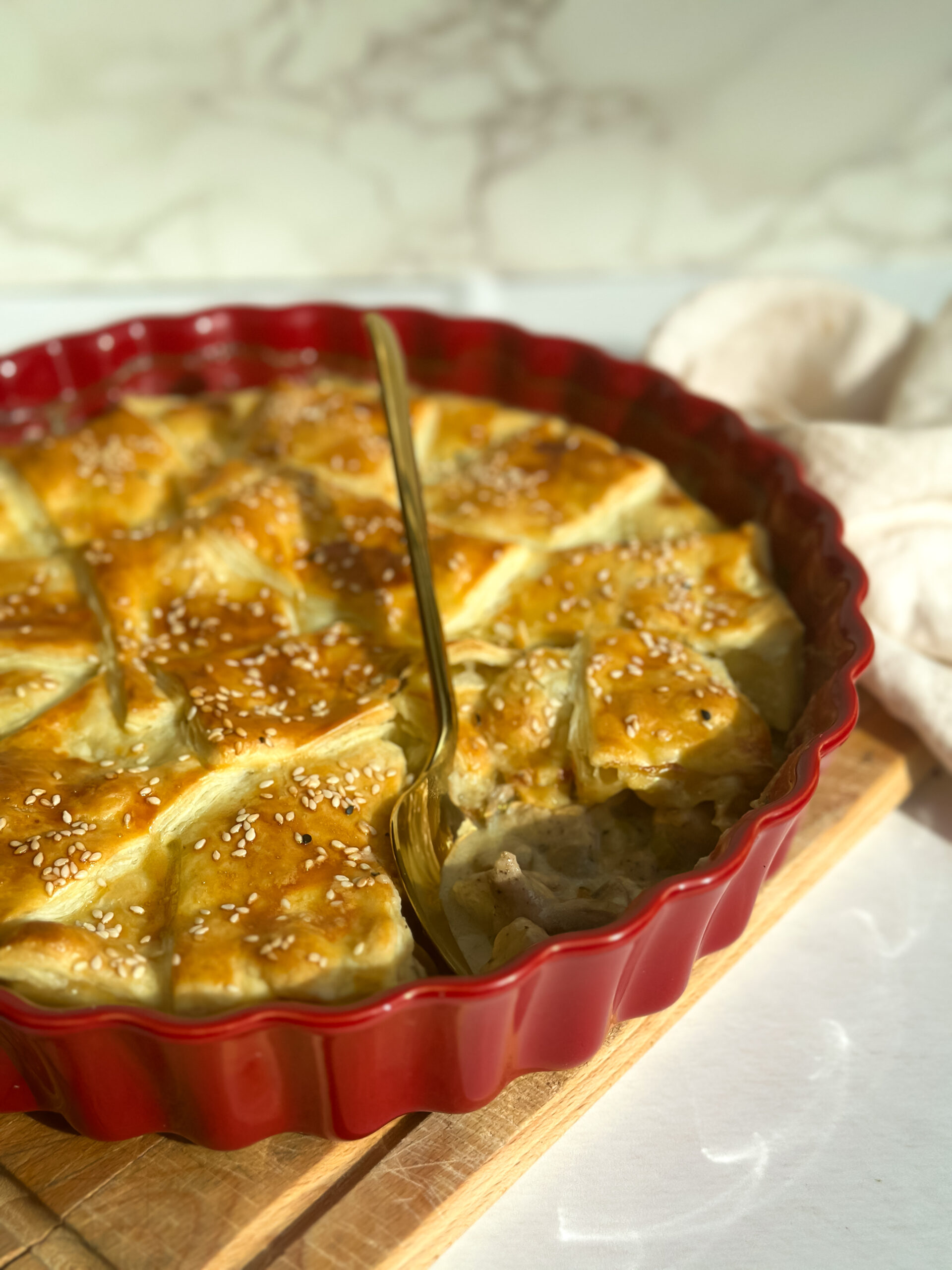 The size of your baking dish can affect the baking time. A deeper dish might require a bit longer in the oven, while a wider, shallow dish might bake quicker. Keep an eye on the puff pastry—it should be golden brown when done.