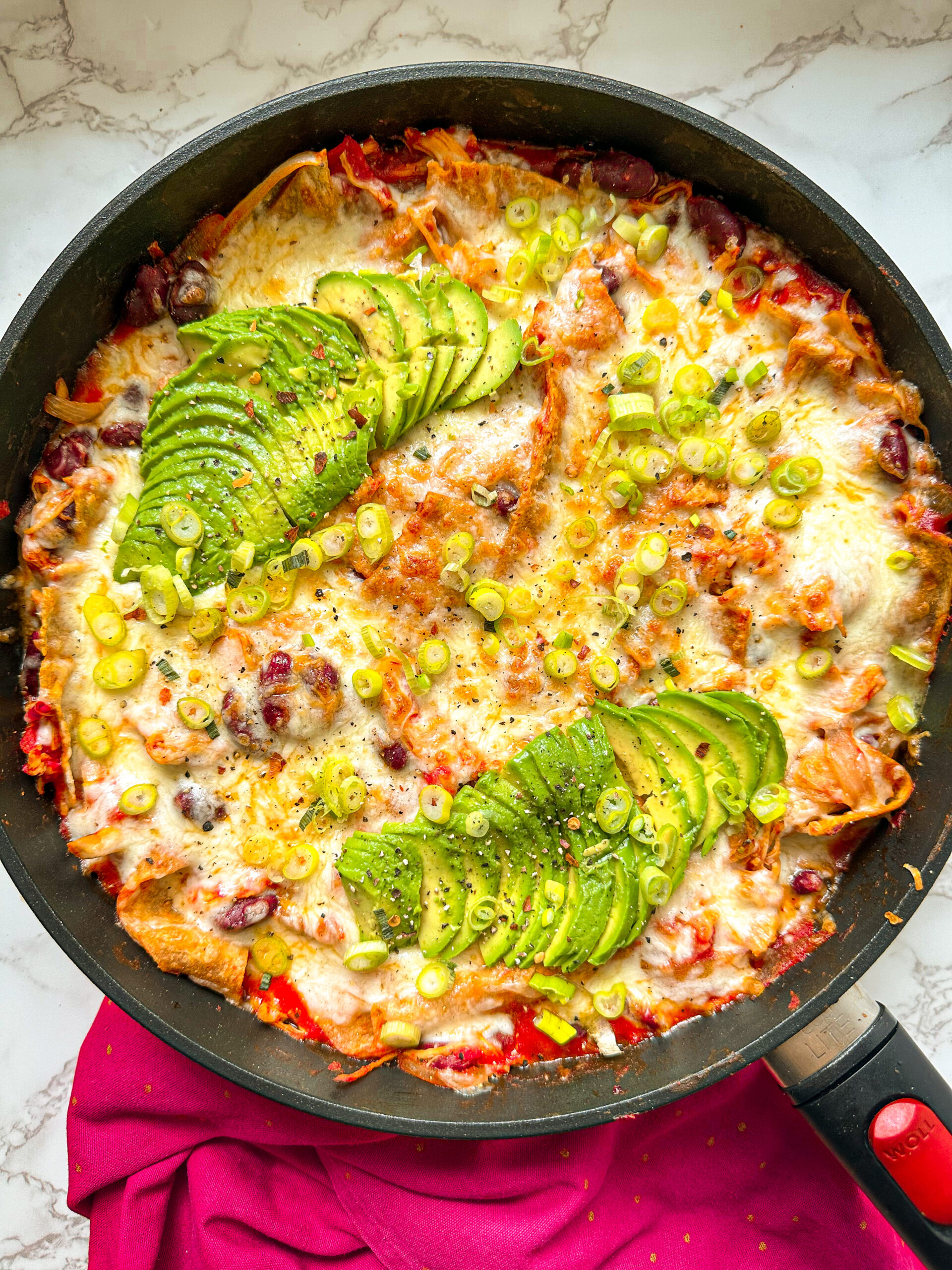 Is it cheeky to call this dish enchilladas when I don’t actually roll the tortillas? I don’t think it is at all! So meet this delightful recipe for Oven-bake Chicken Enchilladas that will become your family dinner favorite in the middle of a busy work week.